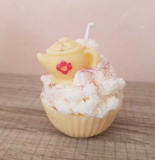 Jolie bougie en forme de cupcake en cire de soja 100% végétale.